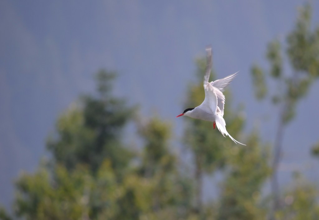 Although the photo I took of the charismatic tern featured here was captured on a warm and clear day in July, I can only imagine what this little bird must experience on other days out in the open ocean. In fact, it is far more likely that the clear blue skies that greeted us on this particular day are more of an aberration for the feisty tern. It isn’t a stretch to imagine that many of this bird’s days are spent alone on the high seas, surrounded by grey skies and pelted by chilling rain. Still, that one day of sunshine under which I witnessed this tern gave the impression of a carefree and easy-going existence. How effortless it was for me to daydream of the untroubled life this bird must live there in the middle of breathtaking Alaskan beauty.
