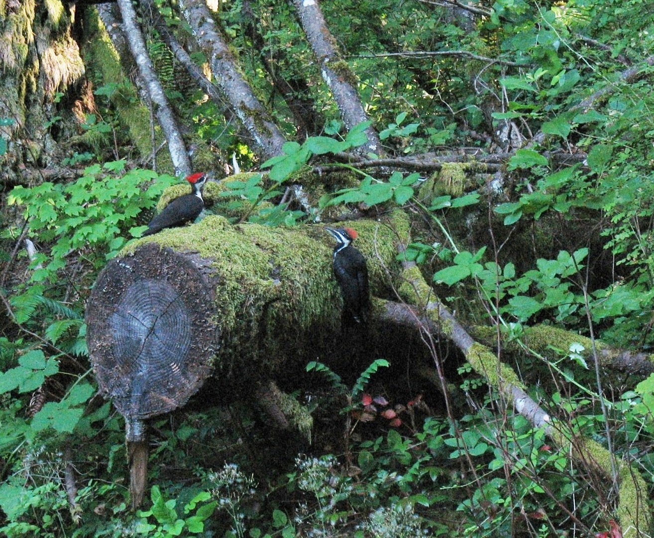 Woodpeckers are extremely opportunistic birds. This pair of pileated woodpeckers, one of the largest of its kind in the U.S., often finds tiny openings in the bark of the trees in my backyard in northwestern Pennsylvania. Each tree is a window, revealing tender morsels of food (grubs and ants are their favorites). Other trees provide great mansions for their young when it is time to nest. True creatures of the trees, the many beautiful species of woodpecker keep their attention focused on the magic to be found within the crevices and branches of their herbivorous playground.