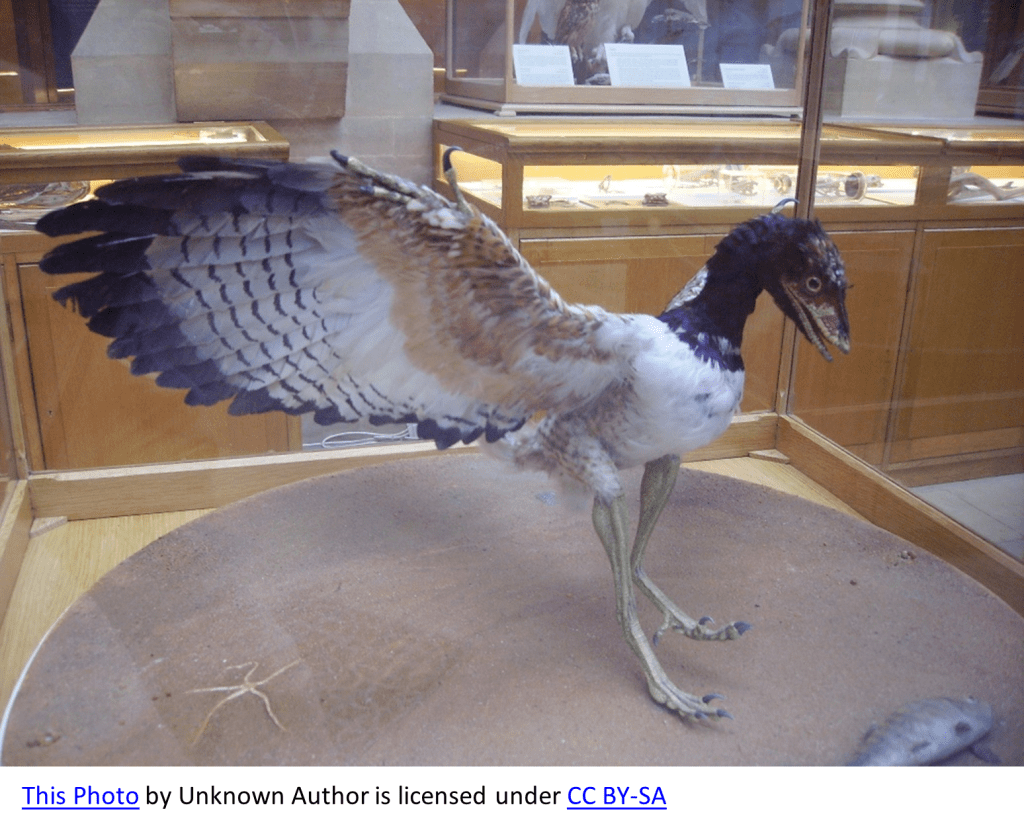The evidence collected thus far traces the ancestors of birds all the way back to theropod dinosaurs. What is widely agreed to be the first bird, Archaeopteryx, appears in the fossil record during the late Jurassic period. This lightly feathered, winged “bird” and others that evolved similarly would pave the way for many new species during the next geologic period (Cretaceous), a time in which a large group of birds called the Enantiornithes exploded. These birds were once widespread across the planet and quite diverse, leaving behind a complex fossil bird taxon. Members of this group included sparrow-sized birds to birds with wingspans of more than 3 feet!